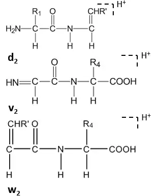 Double backbone cleavage produces internal ions, acylium-type like H2N-CHR2-CO-NH-CHR3-CO+ or immonium-type like H2N-CHR2-CO-NH+=CHR3. These ions are usually disturbance in the spectra.