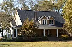 The Dean House is a historic house off U.S. Route 165 in Portland, Arkansas. The 1+1⁄2-story house was designed by architect Charles L. Thompson and built c. 1910. Stylistically, it is a Creole cottage, a simple rectangular shape mounted in a foundation with brick piers. The roof extends over a wraparound porch, which is supported by Tuscan columns. The roof is pierced by a pair of gabled dormers that are decorated with fish-scale shingles.[2]