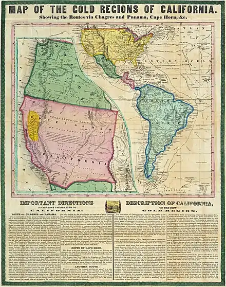 On January 24, 1848, James W. Marshall and his crew found gold at Sutter's Mill in Coloma, California. This discovery would lure tens of thousands of people from the United States and foreign nations. People packed their belongings and began to travel by covered wagon to what they hoped would be new and better life. Since the first great influx of these pioneers began in 1849, they are generally referred to as 49ers.[1] However, the Donner Party pioneers had provided a sobering lesson after mis-scheduling the overland trip to California in 1846–47. Those pioneers had started late and elected to follow the Hastings Cutoff, a new route which slowed the group, and they reached the Sierra Nevada late in fall 1846. There, a storm trapped them in the mountains, resulting in the infamous disaster.[2]: 60–61