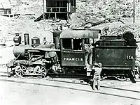 The line was built by a separate company from Pacific Coast Borax Company, because they were struggling with financial issues at the time. Equipment and Heisler locomotive #2 "Francis" from the Pacific Coast Borax Company's old Borate and Daggett Railroad were used to build the Death Valley Railroad. After the line was completed, two 2-8-0 steam locomotives were bought from the Baldwin Locomotive Works to work the line and Francis was sold off.