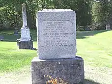 The day after the body was discovered, it was interred in Mowat Cemetery near Canoe Lake.[41][35][49][note 7] Under the direction of Thomson's older brother George, the body was exhumed two days later and was shipped to Owen Sound. It was re-interred in the family plot beside the Leith Presbyterian Church on 21 July in what is now the Municipality of Meaford.[50][51]