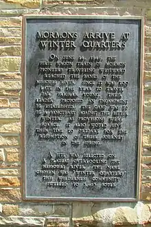 Hardship only increased with the Mormons' departure from Illinois. An estimated one in twelve Latter-day Saints "died in … camps during the first year" of their journey west.[10] "Several hundred Mormon graves" are found in Winter Quarters, Nebraska.[1]: 97 Here, scurvy was the main cause of death due to the lack of fruit and vegetables in the pioneers' diets during their winter travels.[5] The 1846 Nauvoo War had forced them out of the city before they could prepare sufficient food and supplies for the journey. Eating only meat and grains led to malnutrition, which then resulted in cases of noma.[8] Some also died due to exposure to the elements.[11] The death rates in Winter Quarters were three times as high as those of Nauvoo.[3]: 43 Accurate records were difficult to keep,[5] but modern historians have estimated that more than 600 people died in this camp. A statue of two parents mourning the death of their newborn child stands at the Mormon Pioneer Cemetery in Florence, Nebraska, commemorating those who were lost and those who lived on to complete the trek west.[12]