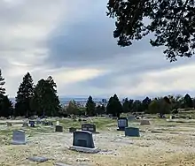 Local chapters of the Relief Society – the women's organization of the church – spearheaded the planning of funerals.[2] They also provided services, including meals, for the person's family. At funerals, the community would join "at the church, home, or graveside to sing hymns, pray, and listen to sermons," mirroring common Protestant practices at the time.[2] At Brigham Young's funeral, a new song composed for the occasion was sung by the mourners. They then accompanied the body to its grave, which was set "on a hill overlooking the [Salt Lake] valley."[26] A wide array of church leaders were in attendance. Gerner's Weekly reported that Young had requested that his funeral attendees not be dressed in traditional mourning clothes.[26] He also provided specific instructions for how his coffin was to be constructed, and explicitly stated that any of his friends or family who wanted to "say a few words" at his funeral be allowed to do so. Young's detailed outline set forth a standard of sorts for Latter-day Saint funerals after 1877. Wilford Woodruff gave similar instructions for his funeral, requesting that the attendees and decorators avoid the color black. This tradition continued for some time; beginning in 1888, the Salt Lake Tabernacle was decorated with white banners for funerals. Services were traditionally held on Sundays once preserving bodies became possible. On the whole, extravagant funerals were discouraged by church leadership.[3]: 27–30 Most adhered to this counsel and held simple affairs to honor their dead, but thousands came to the funerals of well-known, revered general authorities.[18] The First Presidency and Quorum of the Twelve Apostles were typically in attendance at such events.[13]