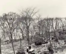 From 1836 to 1839, the Latter Day Saints' mainly settled in Far West, Missouri. It was here that they began the practice of maintaining rural cemeteries, burial grounds located outside city limits. Approximately 200 to 300 Mormons were buried in the Far West burial ground, including David W. Patten, Gideon Carter, and many other victims of the Battle of Crooked River, which occurred in 1838. The bodies of some deceased Latter Day Saints were transported miles in order to be interred in Far West with other people of the faith. Graves were commonly marked using wooden stakes, which collapsed and withered over time. After the Mormons left Far West, the cemetery was abandoned, eventually becoming farmland.[6]