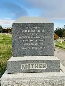 Specific burial traditions were very important to Latter-day Saints in the 1800s; these included dressing the deceased in all white and, for mothers and babies that died during childbirth, placing the infant in the mother's arms. Corpses were laid in their graves facing east, so as to "meet Christ at his second coming."[2] Having the person appear peaceful and organized while lying in his or her coffin was extremely important. Volunteers worked to make the body look beautiful so that the bereaved would be comforted when they saw their departed loved one at the viewing.[16] Likewise, the most prominent Mormon death ritual delineated that endowed Latter Day Saints be dressed in their sacred temple clothing for burial. This practice began in Nauvoo,[3]: 27–28 and evidence show that it was performed in Winter Quarters as well.[18] Those who had not received the temple endowment were dressed in neat, white clothing. Whether or not the person was dressed appropriately was thought to have an effect on his or her ultimate fate.[16] This practice was not, however, mandated by doctrine.[3]: 28 Brigham Young instructed the Latter-day Saints that properly dressing endowed members for burial was important; but added that if for some reason, doing so proved to be impossible, the person would be dressed appropriately in the afterlife regardless.[18] The Latter-day Saints wanted to show due respect to the dead so as to prevent the person accusing them of neglect in the afterlife. Usually, these key rituals were not publicly discussed in church settings. They were seen as holy and private.[16] Women were mainly responsible for performing these death rituals. In this way, they were in charge of the transition of the spirit from its mortal body to the next life.[16]