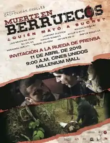 Death in Berruecos (Spanish: Muerte en Berruecos) is a 2018 Venezuelan police drama film created and directed by Caupolicán Ovalles.[3] It is a Venezuelan co-production with Panama through the Ibermedia Program, the Centro Nacional Autónomo de Cinematografía, the Villa del Cine Foundation and SOMOS Films.[3] It was filmed in different locations in countries such as Venezuela, Panama and Ecuador.[3] The film is based on the murder of General Antonio José de Sucre, and revolves around the investigation of Captain Alejandro Godoy (Luis Gerónimo Abreu), who ten years after the murder of General Antonio José de Sucre,[4] reopens the process of his death and finds that part of the previous file that has been destroyed.[3] The film premiered in Venezuelan cinemas on 13 April 2018.[4]
