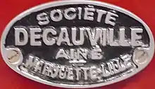 Decauville (French: [dəkovil]) was a manufacturing company which was founded by Paul Decauville (1846–1922), a French pioneer in industrial railways. Decauville's major innovation was the use of ready-made sections of light, narrow gauge track fastened to steel sleepers; this track was portable and could be disassembled and transported very easily.