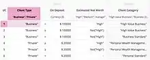 | UC | Client type | On Deposit | Estimated Net Worth | Output: Client Category |