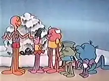 Deck the Halls with Wacky Walls is an American television Christmas special that aired on NBC on December 11, 1983.[1] The special is inspired by the Wacky WallWalker toys that were imported from Japan and merchandised by Ken Hakuta in 1982.[1] The toys are small plastic octopus-like figures molded out of a sticky elastomer; when thrown against a wall, the figures slowly "walk" down as the appendages briefly adhere to the surface. More than 200 million of the toys were sold in the early 1980s.[1] Hakuta set up the TV deal with NBC, and said that the young boy in the special bore a "distinct resemblance to Mr. Hakuta's 4-year-old son, Kenzo."[2]