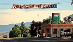 The city was originally named Marshfield. In 1916, the name was changed to Declo.[5] The Central Post Office told the community to choose another name not to exceed five letters. the last initials of the first five men to enter the post office were recorded: August Detlef, George Eldredge, Hyrum Lewis, James Cooley, and Carl Osterhout. The Central Post Office said they preferred Declo instead of Delco, and such it was named.[6][7]