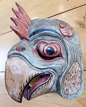 Birds have been seen as spirit messengers of the gods. In Norse mythology, Hugin and Munin were ravens who whispered news into the ears of the god Odin.[76] In the Etruscan and Roman religions of ancient Italy, priests were involved in augury, interpreting the words of birds while the "auspex" watched their activities to foretell events.[77] In the Inca and Tiwanaku empires of South America, birds are depicted transgressing the boundaries between the earthly and underground spiritual realms.[78] Indigenous peoples of the central Andes maintain legends of birds passing to and from metaphysical worlds.[79] The mythical chullumpi bird is said to mark the existence of a portal between such worlds, and to transform itself into a llama.[79][80] Among the Parsees of India and Iran, and among practitioners of Vajrayana Buddhism who believe in the transmigration of souls in Sikkim, Mongolia, Bhutan and Nepal, sky burial has been practised for centuries. In this ritual, corpses are left exposed for griffon vultures to pick clean.[81] The practice is declining, not least because of the loss of most of the vulture population across South Asia to accidental poisoning by the anti-inflammatory veterinary drug diclofenac.[82][83]