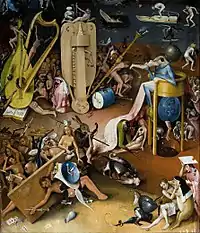 Tetragrammaton issued the album in a stark gatefold sleeve, wrapped around with a segmented illustration from Hieronymus Bosch's painting The Garden of Earthly Delights.[26] The label ran into difficulty over the use of the Museo del Prado-owned painting, which was incorrectly perceived in the US as being anti-religious, featuring immoral scenes, and was thus rejected or poorly stocked by many record shops.[23][34] The original painting is in colour, although it appeared on the LP in monochrome due to a printing error for the original layout, and the band opted to keep it that way.[26] Another section of the same Bosch painting (in colour) had been used as an album cover two years earlier, by Pearls Before Swine on their debut One Nation Underground.[35]