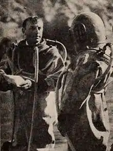 ![]() Director Maurice Tourneur preparing to scout out a possible underwater filming location | |