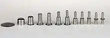 - Threading: Using a wheel and arbor, threads are formed into a part. In this way threaded parts can be produced within the stamping press.