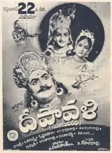 Deepavali (transl. Diwali) is a 1960 Telugu-language Hindu mythological film, produced by K. Gopala Rao under the Aswaraja Pictures banner[2] and directed by S. Rajinikanth.[3] It stars N. T. Rama Rao and Savitri,[4] with music composed by Ghantasala.[5][6] This is third film of N. T. Rama Rao as Lord Krishna. The film is a box hit and celebrated 100 days, despite releasing only 6 days after Bhatti vikramarka. It was dubbed in 1974 in Kannada as Narakasura Vadhe,