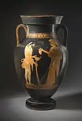 - "Amphora with Athena Pouring Wine for Herakles, and a Woman Pouring Wine for Dionysos". Los Angeles County Museum of Art. Retrieved 2 April 2020.