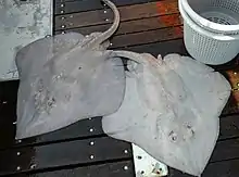 The deepsea skate (Bathyraja abyssicola) is a species of softnose skate, in the family Arhynchobatidae, found in deep water from 362 to 2,906 m, usually on the continental slope. They are distributed from off northern Baja California around Coronado Island and Cortes Bank, north to the Bering Sea, and west to Japan. There have also been sightings north of Darwin Island within the Galapagos Marine Reserve in 2015. This was the first record of the Deepsea Skate being found in the tropical eastern Pacific Ocean. It is fairly common below 1,000 m, and is taken as bycatch in deepwater trawls and traps. The species name abyssicola comes from the Greek abyssos meaning "bottomless", and cola meaning "living at depths".[2]