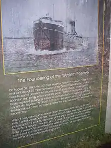 The shipping industry was also significant in Deer Park. The community was located on Lake Superior's Shipwreck Coast. The Deer Park (formerly Muskallonge Lake) Station was the site of one of six Lake Superior stations of the Lifesaving Service between Munising, Michigan and Vermilion Point.[3][6] In 1892, the propeller SS Western Reserve sank about 35 miles northwest of Deer Park with the loss of all but the wheelsman.[7] In 1907, the SS Cyprus sank north of Deer Park; all but one of its crew members died.