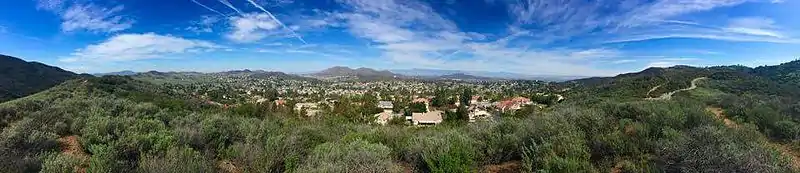 The trails are utilized by hikers, mountain bikers, equestrians, and for jogging or running. It is part of a Southern California wildlife corridor that also links through trails to the Point Mugu State Park and the oceanfront Santa Monica Mountains. Some of the fauna includes the American black bear, Mountain lion, Coyote, Grey fox, Mule deer, Bobcat, Southern Pacific Rattlesnake, Stripe-tailed scorpion, and much more. The flora consists of various Chaparral, Coastal sage scrub, and pockets of oak woodlands. The Los Robles Trail is the main trail in the Deer Ridge Open Space and follows the east-west ridge to the Hope Nature Preserve, and beyond to Thousand Oaks, CA. The trail provides panoramic views of the Santa Monica Mountains to the right, while the high elevation makes for great overlooks of Newbury Park on the left side of the trail. It leads to the 1,600-foot high Angel Vista in the Ventu Park Open Space after transversing the Deer Ridge in southern Newbury Park.[5][6]
