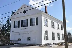 The town hall was built in 1856 to a design by Foster & Robinson of Concord.[3] The builder was local contractor Peter O. Woodman. It is one of the state's finest examples of public Greek Revival architecture, retaining virtually all of its original features. The interior dividers on the ground floor are an easily removable later alteration.[2]