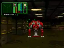 The computer terminals in the game offer an unusually wide range of interaction. Players can use them to remotely control the defence turrets, load ammunition and inspect the turrets for damage and deploy combat droids within the installation's perimeters. Doors can be controlled from the VOS terminals to control access to the installation's different areas. The player can use this capability to lock in enemy forces in parts of the installation.