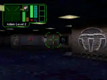 The game also allows the player to fight the invaders by shooting them, but this is discouraged by the fact that new enemies arrive with each passing wave of attacking ships. Also, destroying an enemy greatly degrades the air quality in the immediate area.[5] The computer might even seal doors to polluted areas, sometimes trapping the player. The player can dissolve the pollution by opening doors to adjacent areas, and the pollution levels can be monitored in the VOS terminal's environmental module.'