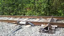 Single use systems typically involve a frangible engagement bar or a stainless steel wire / braid strung between the rails and typically outside the rails as well, fastened to the sleepers. If the bar or braid is hit by something, it breaks, and the circuit break alerts that there is a dragging item.[3]