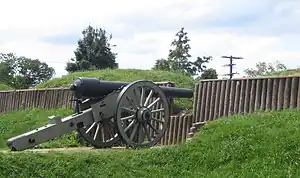 During the American Civil War, Union forces built in the Washington area 68 major enclosed forts, used to house soldiers and store artillery and other supplies. They also built 93 prepared (but unarmed) batteries for field guns and seven blockhouses.[2] There were also 20 miles of rifle pits and 30 miles of connecting military roads.[3] The Confederacy never captured any of these forts, though some came under enemy fire.