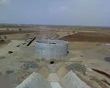 Each SDC is a circular underground tank with a capacity of 150,000 litres (40,000 US gal). The average depth of each SDC below the ground level is 5–6 metres (16–20 ft). Each will service an area of 100 hectares (250 acres).[5] Each SDC, along with its associated instrument panel room and transformer, has been allocated a 20 by 20 m (66 by 66 ft) area.
