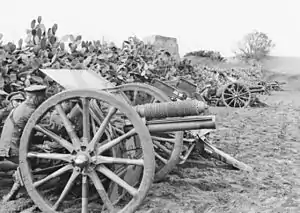 Deir al-Balah was captured by the British Army following the surrender of Khan Yunis on 28 February 1917. By April an aerodrome and an army camp were established there and Deir al-Balah became a launching point for British forces against Ottoman-held Gaza and Beersheba to the north and northeast, respectively.[46] Of the 25 British war cemeteries dating from World War I, one of the six largest was built in Deir al-Balah in March 1917.[47] It continued to be used until March 1918 and contains a total of 724 graves.[46] Deir al-Balah became a part of the British Mandate of Palestine starting in 1922. A municipal council to administer the town was established by the British authorities in 1946, but it had limited jurisdiction over civil affairs and provided a few basic services.[48]