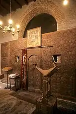 The Church of al-Adhra (Church of the Virgin) at the monastery was built over an ancient cave. It is claimed that Mary and Jesus spent six months and ten days here on their flight into Egypt from King Herod.[6] The altar stone is dated 747 CE.