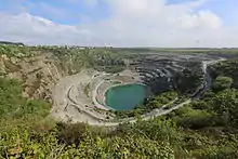 The quarry was connected to a narrow gauge railway worked by steam and diesel locomotives to move the slate: this is thought to have begun before 1834 and continued in use until after 1987.[17][18] The North Cornwall Railway provided a freight service from Delabole between 1893 and 1964 (passenger services ended in 1966).