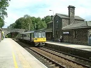 The station gets one train per hour westbound to Chester and one train per hour eastbound to Manchester Piccadilly. 18 trains per day run to Chester, with 17 running towards Manchester. On Sundays, there is a two-hourly service each way, with 7 trains in each direction.[2] The majority of services are run by Northern Class 150 trains, with some Class 156's also serving the station.