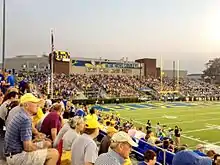 In November 2018, it was announced that, as part of a $60 million campaign, a new athletic training center would be built and Delaware Stadium would be renovated. Improvements to the stadium will include upgrading the west (home) stands (including more chair-back seating), a new press box and enhanced restrooms and concessions.[9] Construction on this project is currently in progress. The new seating areas were completed on time for the Delaware season opener August 29, 2019; however the press box, club level, and concessions were not. Temporary press boxes were built on the east stands for use during the entire 2019 season, along with temporary restroom and concession facilities. The Stadium renovations and Whitney Athletic center have been completed as of December 2020. A new video board will be installed for the 2023 season.[10] Delaware is expected to soon announce a fund-raising project to construct an $80 million building with offices and indoor practice facilities at the north end of Delaware Stadium instead of a previously planned Field House restoration.[11]