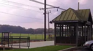 Delaware Valley University station is a small station along the SEPTA Lansdale/Doylestown Line. It is located on the campus of Delaware Valley University, just off of U.S. Route 202. This stop is often referred to as "Del Val". It was originally named Farm School by the Reading Company until the 1960s, reflecting the college's original name of National Farm School. The station was called Delaware Valley College station until the university changed its name in 2015. In FY 2013, the station had a weekday average of 68 boardings and 70 alightings.[1] A small-scale improvement project is in the planning to help beautify the station; if approved, hanging flower baskets, new paint and directory signs would be added to the structure. This station is wheelchair accessible.