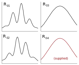 The total pattern of all signal photons at D0, whose entangled idlers went to multiple different detectors, will never show interference regardless of what happens to the idler photons.[20] One can get an idea of how this works by looking at the graphs of R01, R02, R03, and R04, and observing that the peaks of R01 line up with the troughs of R02 (i.e. a π phase shift exists between the two interference fringes). R03 shows a single maximum, and R04, which is experimentally identical to R03 will show equivalent results. The entangled photons, as filtered with the help of the coincidence counter, are simulated in Fig. 5 to give a visual impression of the evidence available from the experiment. In D0, the sum of all the correlated counts will not show interference. If all the photons that arrive at D0 were to be plotted on one graph, one would see only a bright central band.