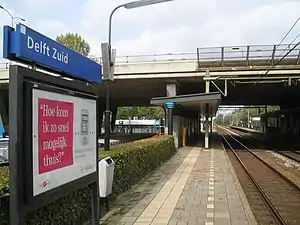 Delft Campus railway station is a railway station in Delft, Netherlands, located on the railway line between The Hague and Rotterdam. The railway station was opened on 31 May 1970. The station building was demolished in June 2006. The name of the station was Delft Zuid until 14 December 2019.