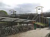 The station area is dominated by the overpassing viaduct, which carries the Kruithuisweg, a provincial highway, over the railroad. The viaduct is also used by pedestrians and travellers to reach the platforms at the other side.