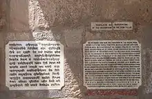 In 1831, the East India Company officer William Elliott made a facsimile of the inscription. Based on this facsimile, in 1834, James Prinsep published a lithograph in the Journal of the Royal Asiatic Society of Great Britain and Ireland. However, this lithograph did not represent every single word of the inscription correctly.[12] Some years later, British engineer T. S. Burt made an ink impression of the inscription. Based on this, in 1838, Prinsep published an improved lithograph in the same journal, with his reading of the script and translation of the text.[12][13]