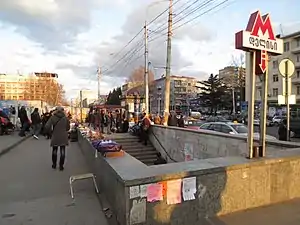 Delisi (Georgian: დელისი) is a metro station on the Saburtalo Line in Tbilisi, Georgia. The station was known as Viktor Gotsiridze from 1992 to 2006. It has two entrances and is located at the intersection of Vazha-Pshavela avenue and Mikheil Tamarashvili street. The station and its surrounding area acts as a transport hub serving the upland settlements and areas of the Vake and Saburtalo districts with bus routes.