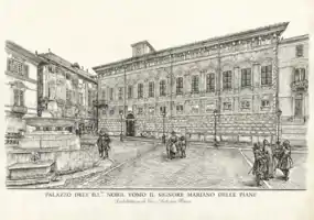 There were many prominent figures in this troubled historic period, and the Delle Piane family also had many palaces and villas in this age.[41] Antonio, who officially received Victor Emanuel I, king of Sardinia, in 1814 and then Pope Pius VII in 1815, both on visits to Genoa, possessed the monumental complex, abbey, monastery and adjoining lands of San Nicolò del Boschetto in Rivarolo; the neighbouring Palazzo Cattaneo Delle Piane, built in the 16th century, surrounded by vast lands; and the Palazzo Veneroso in Genoa.[42]