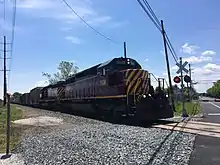 The Delmarva Central Railroad operates with 14 locomotives, consisting of EMD GP38-2, EMD MP15AC, and EMD SD40-2 models.[7] The DCR had EMD GP11 locomotives on the line temporarily, until operations were well underway, and the October 2018 issue of Railpace magazine noted on page 9 that the last two GP11s on the DCR had departed. DCR 2005 and 2007 were interchanged to Norfolk Southern at Clayton on July 25, 2018, for movement back to the home rails of parent company Carload Express. The magazine added that the DCR now has "an adequate number" of MP15s and GP38s to handle local chores.