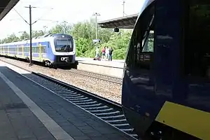 Delmenhorst (German: Bahnhof Delmenhorst) is a railway station[2] located in Delmenhorst, Germany. The station is located on the Oldenburg–Bremen railway and Delmenhorst–Hesepe railway. The train services are operated by Deutsche Bahn and NordWestBahn. The station has been part of the Bremen S-Bahn since December 2010.