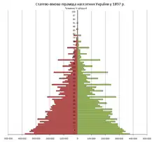 The figures below refer to the nine governorates of the Russian Empire (Volhynia, Katerynoslav, Kyiv, Podilia, Poltava, Tauryda, Kharkiv, Kherson and Chernihiv) with a Ukrainian majority.[37]