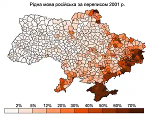 The data in this article are based on the 2001 Ukrainian census (the most recent census),[3] the CIA World Factbook, and State Statistics Committee of Ukraine figures. The next census, is planned to take place following the end of the Russo-Ukrainian War.[4]