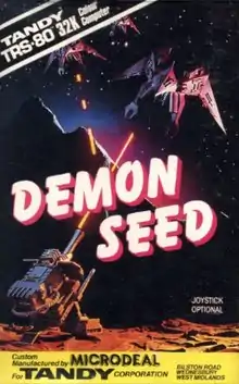 Demon Seed is a fixed shooter written by Jeffrey Sorensen and Philip MacKenzie for the TRS-80 and published in 1982 by Trend Software.[1] The same programmers developed the TRS-80 Color Computer version published in 1983 by Computer Shack.[2] Demon Seed is a clone of the 1980 arcade game Phoenix.[2]