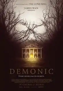 On May 13, 2011, the film was announced under the title House of Horror, with James Wan set to produce.[2] On November 22, 2011, it was announced Xavier Gens would direct the film.[3] On January 23, 2013, Maria Bello and Frank Grillo joined the cast.[4] On October 8, 2013, the film was retitled Demonic.[5] On July 31, 2014, it was announced that the film would be released on December 12, 2014.[6] On September 19, 2014, the film was pushed back to an unknown date.[7]