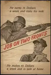 If successfully implemented, the leadership of a cause can be made sufficiently troublesome to inspire revolution when there will be insufficient capacity to exercise active hatred towards the external enemy.[2]: 169 Diverting frustration to one's own leadership is often the method most commonly seen in wartime propaganda, as the photographs below attest. With the implementation of modern warfare in World War I and all its associated stresses, "every belligerent took a hand in the perilous business of fomenting dissension and revolution abroad, reckless of the possible repercussions of a successful revolt".[2]: 169