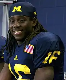 Robinson also competed for the Michigan men's track and field team during his freshman year.[31] In January 2010, Robinson told a reporter, "When I was getting recruited I always wanted to run track and play football. It helped me move faster on the football field."[31] Michigan track coach Fred LaPlante said Robinson had one of the 10 fastest 100-meter high-school times in the United States in 2009 and described Robinson the sprinter as "one of the four or five best guys in the Big Ten."[31] LaPlante emphasized Robinson's "quickness"