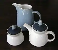 Denby Pottery Company Ltd is a British manufacturer of pottery, named after the village of Denby in Derbyshire where it is based. It primarily sells hand-crafted stoneware tableware, kitchenware and serveware products including dinner sets, mugs and serving dishes, as well as a variety of glassware products and cast-iron cookware.